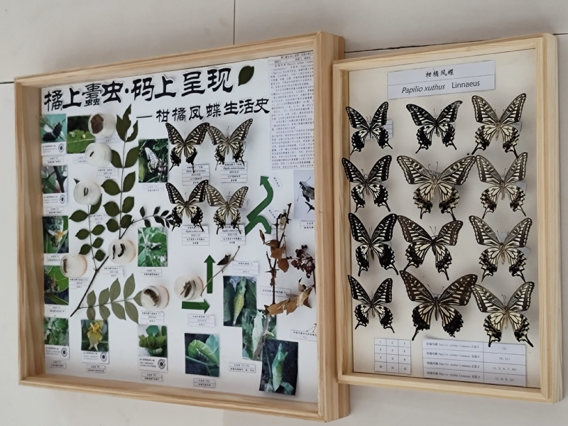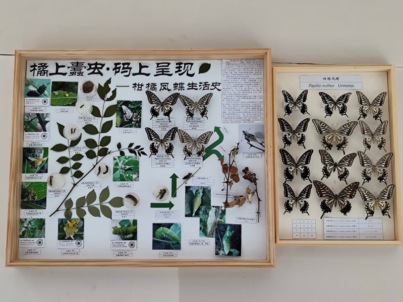 本作品利用野外采集与养殖相结合的方法,获得柑橘凤蝶的各个虫态的标本、生态照片,录制短视频,及压制了寄主植物花椒为害状标本,完整的展示柑橘凤蝶的完全变态生活史。