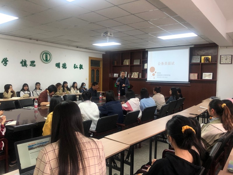 2021年5月13日14:00,生命科学学院在实验中心501会议室举办了公务员的面试指导会。本次指导会特邀沈阳师范大学管理学院党总支书记兼副院长索柏民教授作为主讲人,由学院党总支书记刘海邦主持,参加会议的有张阳副院长、辅导员林楠老师、本科毕业生及研究生毕业生共60余人。