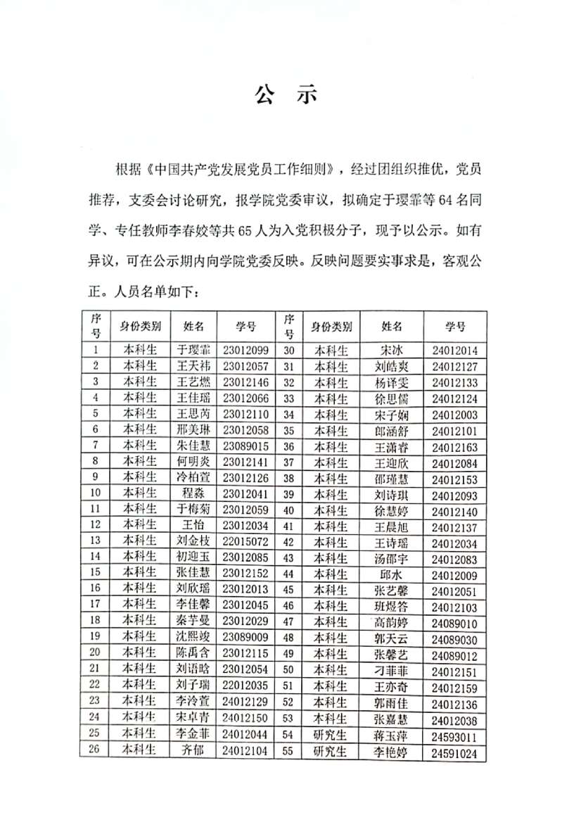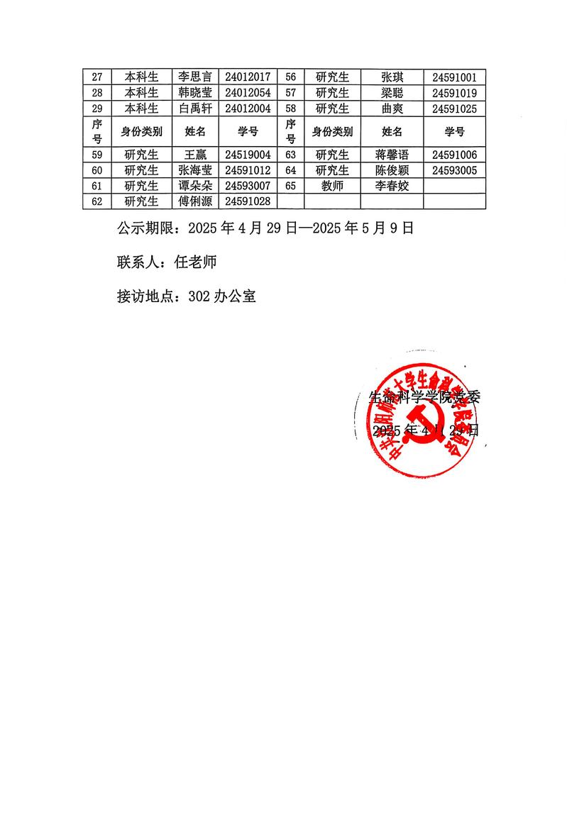 【公示】生命科学学院关于确定2025年上半年入党积极分子的公示