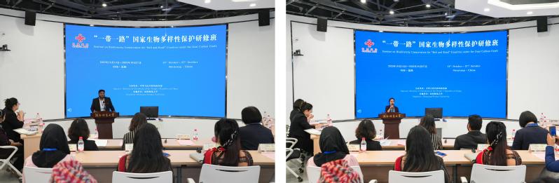 佟玉平向远道而来的各国学员表示热烈欢迎,简要介绍了学校的办学优势与教育对外开放成果,强调依托援外培训,学校持续分享中国在高等教育、基础教育、国际中文教育及绿色生态等多领域的实践经验,致力于以“小而美、专而优”的培训特色,与“一带一路”国家建立长效合作,助力当地教育发展、经济振兴与人文融合。她表示,本期研修班将促进中国在生物多样性保护领域的成果与国际同仁的交流互鉴,深化各国在应对全球气候变化与生态实践等方面的联动发展。
